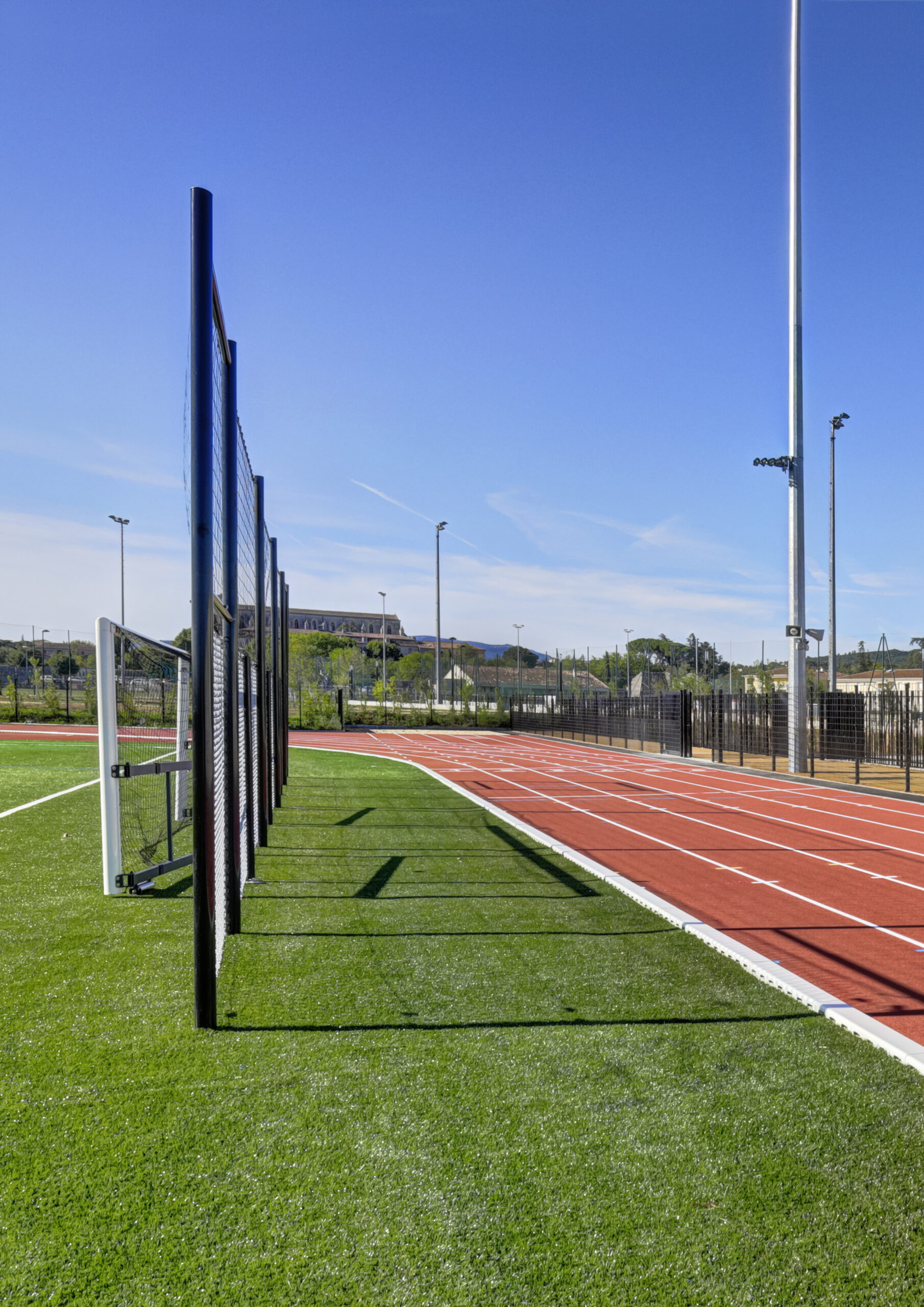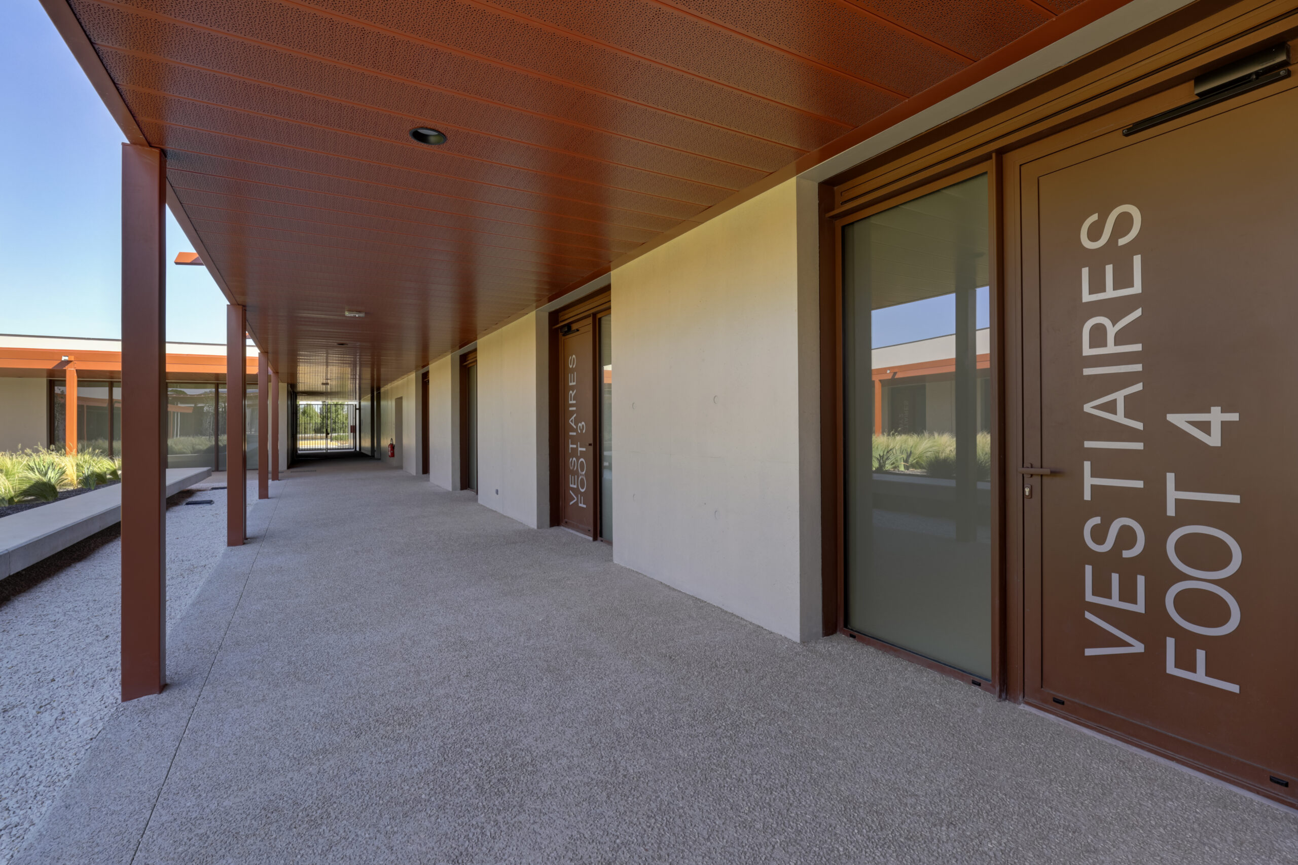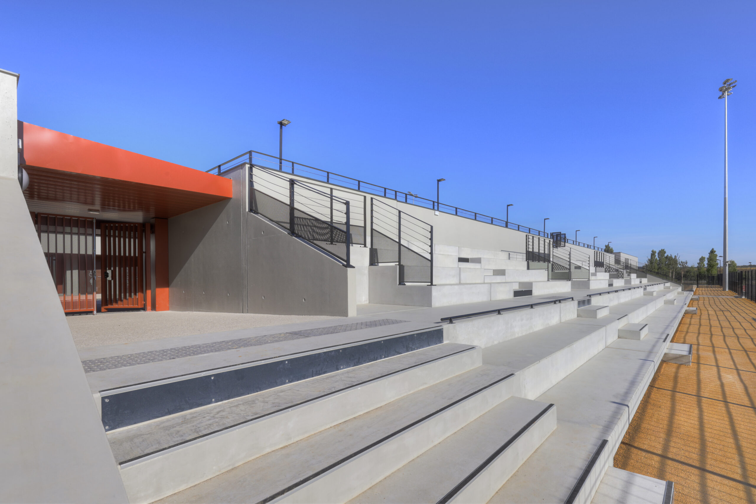 L’opération comprenait la création d’un bâtiment semi-enterré regroupant vestiaires, locaux associatifs et tribunes, la réalisation d’un terrain de football et d’athlétisme, d’un terrain de rugby, ainsi que l’aménagement de 260 places de stationnement et d’un vaste traitement paysager.